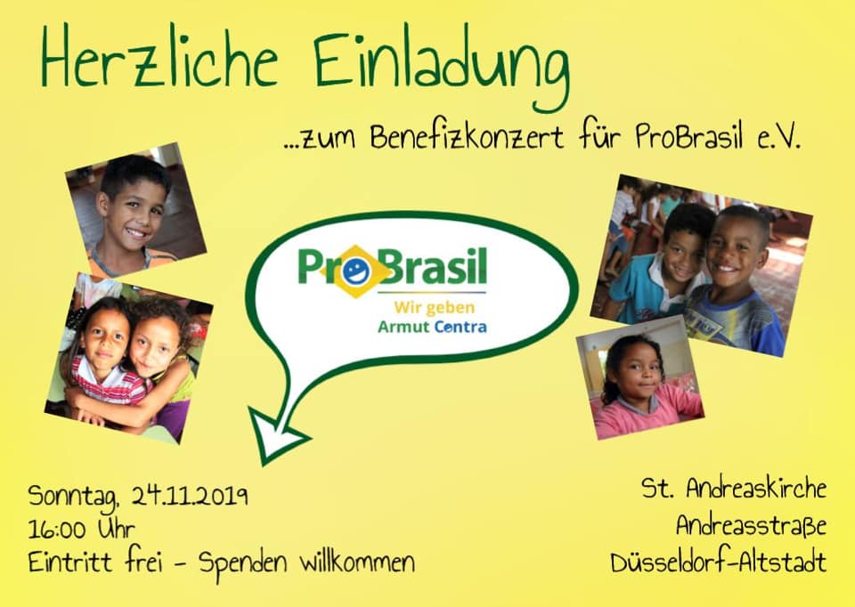 Das will die 8. Klasse der Realschule Golzheim. Darum hat sie ihre gesammelten Spenden öffentlich an ProBrasil e.V. überreicht, die die Gründung einer Musikschule im Sozialzentrum am südlichen Stadtrand von São Paulo plant. Anlass der Übergabe war das Konzert eines brasilianischen Musikquartetts am 14. Mai 2019 in der Berger-Kirche in Düsseldorf.