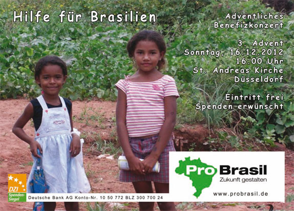 Am Sonntag, dem 16.12.2012 findet in der St. Andreas Kirche ein großes Benefizkonzert statt. Der Eintritt wird dabei frei sein, jedoch bitten wir um großzügige Spenden.